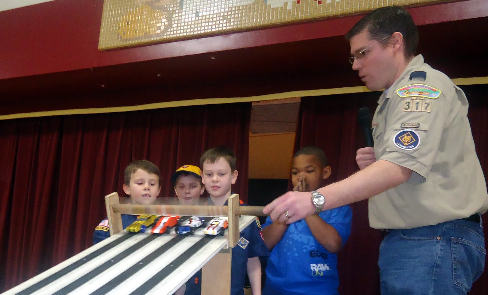 Finally, the big day arrived! We all headed to the church hall for the big race. Ray was very proud of his car and very excited to race it.